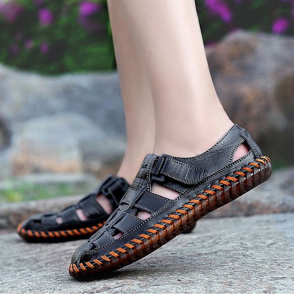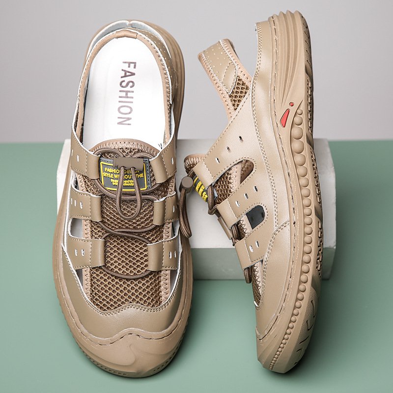 صندل الشاطئ الكاجوال المريح المخيط يدويا مع العلوي الشبكي من ماركة إيطالية